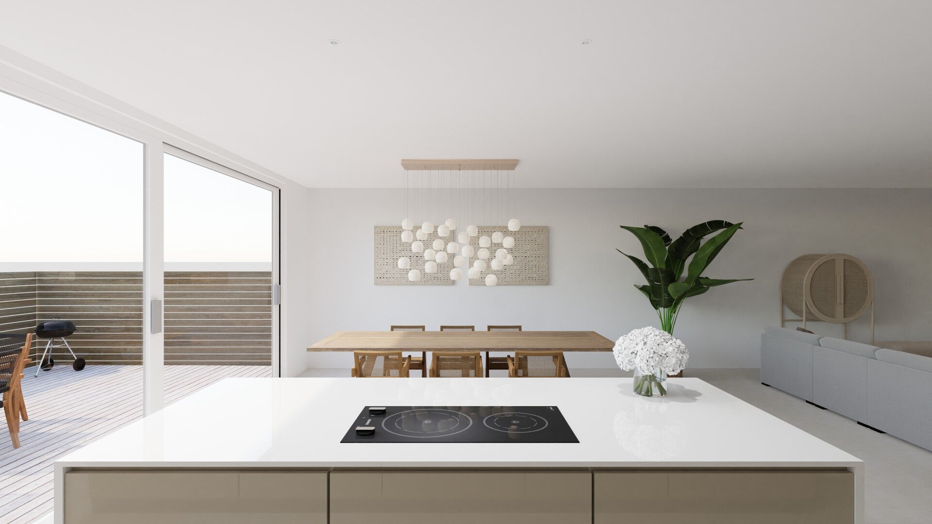Voor dit project is een totaal 3D visualisatie gemaakt voor de renovatie van een prachtige woning in Den Haag (premium design). Het pronkstuk van deze renovatie is ongetwijfeld de glanzende minimalistische keuken met een ruim kookeiland. Hier schittert niet alleen het design, maar ook onze toewijding aan duurzaamheid. Gerecyclede houten elementen sieren deze ruimte, terwijl voldoende kastruimte en aanrechtoppervlakte zijn gereserveerd voor de bereiding van Indische lekkernijen, waarmee de wens van de opdrachtgever vervuld wordt.